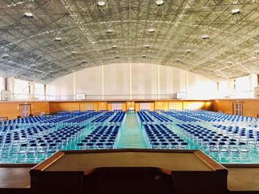 広々とした寒い体育館で行います。